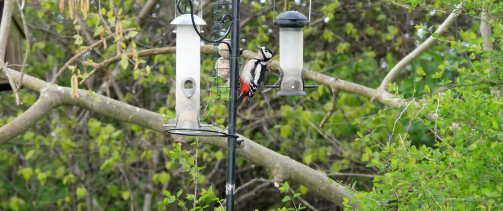 We noted 32 species in total but highlights included a red kite circling overhead and a kestrel perched in a tree looking for his next meal. It was a joy to hear the Chiffchaffs starting to call and large numbers of chaffinch, blue tit, great tit, long-tailed tit and greenfinch on the feeders. A female greater spotted woodpecker was feasting on the peanut feeder and a well camouflaged Dunnock was feeding on the ground.