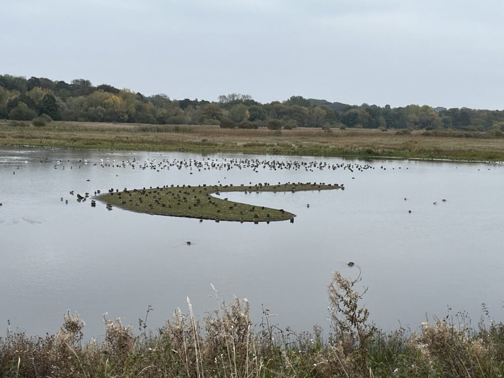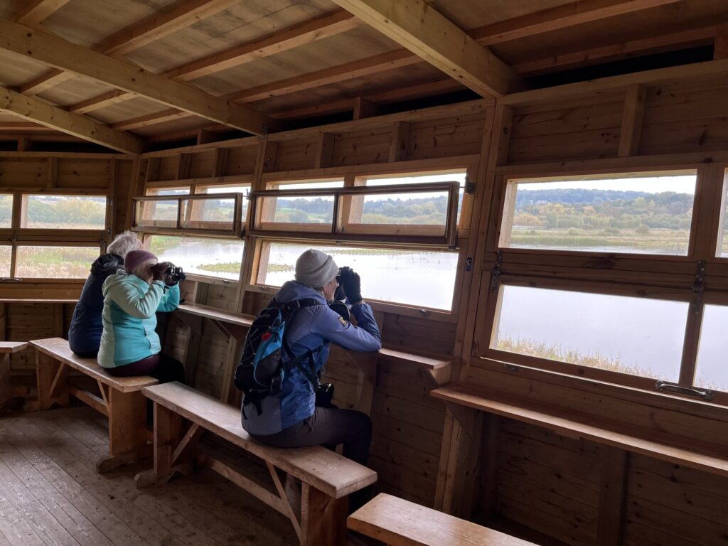 On the main lake we observed Shelduck, Shoveller, Tufted Duck, Pochard, Teal, Moorhen , Coot and Mallard. A lone Lapwing posed for us on the island, showing off its crest and glossy green wings, before giving us an aerial display. Oyster catcher, Gadwall and a Ringed Plover were observed from a different hide where we also enjoyed a game of Spot-the -Snipe, eventually locating about a dozen hiding in the long grass.